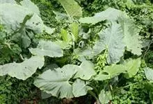 大野芋 Schott)是天南星科大野芋属常绿草本植物。根茎倒圆锥形直立;叶丛生,叶柄淡绿色具白粉;叶片长圆状心形或卵状心形,长1.3米,宽1米;花序柄近圆柱形;浆果圆柱形,…全部>>