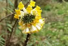 结香是瑞香科结香属落叶灌木。又名岩泽兰、三桠皮、三叉树、蒙花、山棉皮等。高约0.7-1.5米,小枝粗壮,褐色,常作三叉分枝,幼枝常被短柔毛;叶在花前凋落,长圆形,披针形至倒披针形,先端短尖,…全部>>