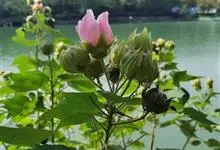 木芙蓉,锦葵科木槿属落叶灌木或小乔木。小枝上有细绒毛;叶片为卵状心形,托叶为披针形,常早落;花单生,花萼为钟形,花冠初为白色或淡红色,后逐渐变为深红色;果实为扁球形,有淡黄色的毛附着。花期8到10月。…全部>>