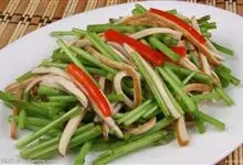 韭菜炒香干是一道菜品,制作原料主要有韭菜、香干等。鲜嫩可口,有点小小的微辣,加入切成段的韭菜,翻匀,…全部>>