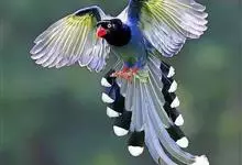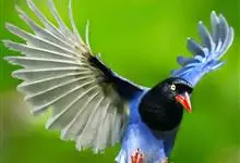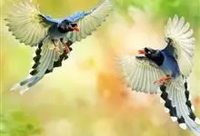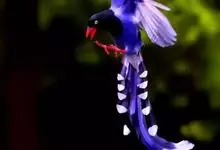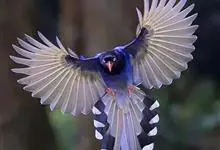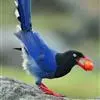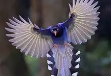台湾蓝鹊:体长64至65厘米,翼展18至21厘米,尾长约40厘米,尾羽长占了总体长的三分之二。头、脸、颈、喉、胸都是黑色,黄色的眼珠包围黑色的瞳孔,鲜红色的鸟喙、双脚,…全部>>