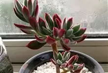 锦晃星是景天科、石莲花属多肉植物。多年生小灌木状多浆植物,灰绿色卵状倒披针形肥厚肉质叶轮状互生,全缘,椭圆尖头,长3-4厘米,宽2-2.5厘米,厚约1厘米,玲凉季节阳光下,叶端及上缘呈红色。…全部>>