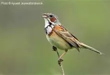 栗耳鹀:是雀形目鹀科的鸟类。体重16-27克,体长130-173毫米。是体型略大的鹀。繁殖期雄鸟的栗色耳羽与灰色的顶冠及颈侧成对比;颈部图纹独特,为黑色下颊纹下延至胸部与黑色纵纹形成的项纹相接,并与…全部>>
