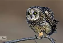 短耳鸮又名小耳木兔、田猫王、夜猫子等,是鸮形目鸱鸮科耳鸮属中小型猛禽动物。成鸟面盘显著,眼周黑色;眼先及内侧眉纹灰白色,面盘余部棕黄色杂以黑色细羽干纹;耳簇羽短小而几乎不外露,…全部>>