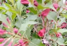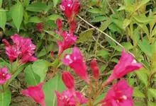 红王子锦带花是忍冬科锦带花属的落叶开张性灌木。株高1 -2米;嫩枝淡红色,老枝灰褐色;单叶对生,呈椭圆形,先端渐尖,叶缘有锯齿,红枝及叶脉具柔毛;花冠漏斗状钟形,花冠筒中部以下变细,聚伞花序,…全部>>