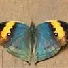 枯叶蛱蝶,又名木叶蝶、树叶蝶等,属于蛱蝶科。翅正面黑褐色,具深蓝色光泽,前翅顶角尖出,顶区有1枚小白点,中部有1条倾斜的橙色斑带,从前缘延伸至Cu室外缘,u室中部有1枚黑色圆斑,…全部>>