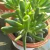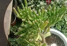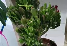 筒叶花月,是景天科青锁龙属的多年生草本植物。植株多分株,灌木状,茎较粗壮,圆柱形,表皮灰褐色;叶片肉质,互生,呈圆筒状,簇生于茎或分枝顶端,叶端呈斜截形,截面为椭圆形;花呈星状,淡白色;花期秋季。…全部>>