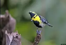 冕雀:共有4个亚种。体长20-21厘米,体重34-49克。具蓬松的黄色长型冠羽。雌鸟似雄鸟,但喉及胸深橄榄黄色,上体沾橄榄色。不会被误认的体大的黄色及黑色山雀。混群栖于原始林及次生林的林冠层,…全部>>