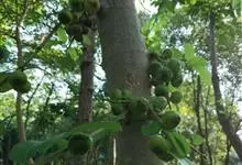 大果榕是桑科榕属的小乔木,株高可达10米;幼枝被柔毛;叶互生,宽卵状心形或近圆形;雄花无梗、匙形、花丝长,雌花生于雌株榕果内,子房白色;榕果簇生于树干基部或老茎短枝上、扁球形或陀螺形,…全部>>
