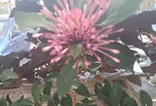 烟火树 Merr.)是唇形科、大青属常绿灌木或小乔木,株高可达4米。幼枝方形,墨绿色。叶对生,长椭圆形或披针形,先端尖,全缘或波状缘。纸质,叶背暗紫红色。聚伞状圆锥花序,顶生,小花多数,聚生成团,…全部>>