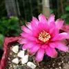 绯花玉 Speg.)是仙人掌科、裸萼球属多肉植物,植株呈扁球形,表皮墨绿色,刺针状,每个刺座有5枚灰色周刺,花生于球体顶端,夏季开花,花色有白、粉红、深红等。果实纺锤形,深灰绿色,种子黑色。…全部>>
