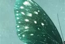 玉斑凤蝶Papilio helenus 别名白纹凤蝶,是凤蝶科凤蝶属美凤蝶亚属大型种类。雌雄同型;体翅皆黑色,后翅正面中室外有3个并列的白色斑,亚外缘有1列模糊的新月形红色斑,…全部>>