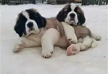 圣伯纳犬,别名巴里汉德,属于大型工作犬,肩高约65~90厘米,体重约50~90千克。圣伯纳犬身体强壮,被毛红褐色和白色相间,头圆而宽大。颈部强壮,胸宽深,背直。前肢长直,腕关节略前倾,后肢腿骨粗壮,…全部>>