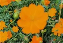 黄秋英是菊科秋英属的一年生草本植物。枝叶为对生的二回羽状复叶,裂片呈披针形;花为舌状花,有单瓣和重瓣两种,颜色多为黄、金黄、橙色,红色;瘦果棕褐色,粗糙有毛,顶端有细长喙;春播花期6-8月,…全部>>