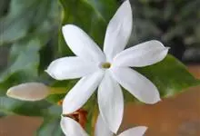 素馨花,木犀科素馨属多年生的攀援灌木植物。攀援灌木,小枝圆柱形,具棱或沟;叶对生,叶轴常具窄翼,小叶片卵形或长卵形;聚伞花序顶生或腋生,花序梗长,苞片线形,花萼无毛,裂片锥状线形,花冠白色,…全部>>