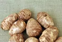 芋头又称芋、芋艿,天南星科植物的地下球茎,形状、肉质因品种而异,通常食用的为小芋头。多年生块茎植物,常作一年生作物栽培。叶片盾形,叶柄长而肥大,绿色或紫红色;植株基部形成短缩茎,逐渐累积养分肥大成肉…全部>>