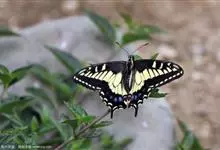 金凤蝶,是鳞翅目凤蝶科凤蝶属动物。金凤蝶为中型凤蝶,翅展70-84毫米,翅背面底色黑褐色,翅脉黑色,翅室具黄斑;前翅背面基部呈暗黄色,亚外缘为黑色,内具一列小黄斑;后翅背面亚外缘区具黑宽边,…全部>>