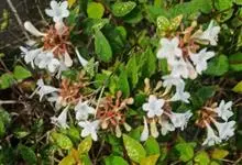 大花六道木,忍冬科六道木属半常绿矮生灌木。其幼枝为红褐色,有短柔毛;叶片倒卵形为墨绿色,有光泽;花粉钟形为白色;圆锥花序,开花繁茂;花期长,5~11月持续开花。…全部>>