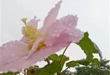 木芙蓉,锦葵科木槿属落叶灌木或小乔木。小枝上有细绒毛;叶片为卵状心形,托叶为披针形,常早落;花单生,花萼为钟形,花冠初为白色或淡红色,后逐渐变为深红色;果实为扁球形,有淡黄色的毛附着。花期8到10月。…全部>>