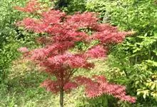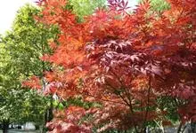 红枫,园艺种,槭树科槭属落叶小乔木,高5~8 m;树冠伞形,枝条开张,细弱。单叶对生,近圆形,薄纸质,掌状7~9深裂,裂深常为全叶片的1/2~1/3,基部心形,裂片卵状长椭圆形至披针形,先端尖,…全部>>