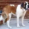 圣伯纳犬,别名巴里汉德,属于大型工作犬,肩高约65~90厘米,体重约50~90千克。圣伯纳犬身体强壮,被毛红褐色和白色相间,头圆而宽大。颈部强壮,胸宽深,背直。前肢长直,腕关节略前倾,后肢腿骨粗壮,…全部>>