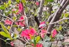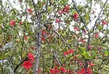 贴梗海棠Nakai)是蔷薇科、木瓜海棠属植物。落叶灌木,高达2米,枝条直立开展,有刺。叶片卵形至椭圆形,稀长椭圆形,长3-9厘米,宽1.5-5厘米。花先叶开放,3-5朵簇生于二年生老枝上。…全部>>