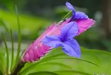 紫花凤梨,是凤梨科铁兰属的多年生草本植物。株高不及30厘米;叶片拱状线形,叶丛族生于短缩茎上,斜出或横生,叶为绿色,基部具有紫褐色彩晕;短穗状花序,总苞片粉红色,呈扇形;小花青紫色,…全部>>