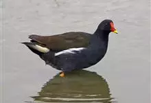 黑水鸡:是鹤形目、秧鸡科的鸟类,共有12个亚种。中型涉禽,体长24-35厘米。嘴长度适中,鼻孔狭长;头具额甲,后缘圆钝;嘴和额甲色彩鲜艳。翅圆形,第2枚初级飞羽最长,或第2枚和第3枚初级飞羽等长,…全部>>