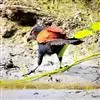 褐翅鸦鹃,是鹃形目鸦鹃科鸦鹃属的鸟类。褐翅鸦鹃的身体为黑色;头颈和胸带蓝紫色金属光泽并具黑亮的羽干纹,下胸至腹部泛金属绿光泽;两翼和肩部为棕栗色,外侧飞羽具暗色羽端,尾羽闪铜绿色光泽;虹膜赤红色,…全部>>