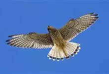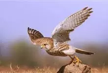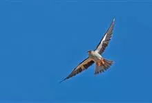 红隼:是隼科、隼属的小型猛禽之一。体重173-335克,体长305-360毫米。翅狭长而尖,尾亦较长,外形和共同爪隼非常相似。雄鸟头蓝灰色,背和翅上覆羽砖红色,具三角形黑斑;腰、尾上覆羽和尾羽蓝灰色,…全部>>
