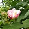 木芙蓉,锦葵科木槿属落叶灌木或小乔木。小枝上有细绒毛;叶片为卵状心形,托叶为披针形,常早落;花单生,花萼为钟形,花冠初为白色或淡红色,后逐渐变为深红色;果实为扁球形,有淡黄色的毛附着。花期8到10月。…全部>>