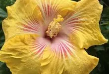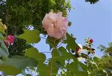 海滨木槿是锦葵科木槿属植物,落叶小乔木,株高3-5米,胸径20厘米,扁球形树冠,枝叶繁盛。厚纸质单叶互生,扁圆形、倒卵形或宽倒卵形,先端钝近平,具短突尖,基部圆形或浅心形,叶缘中上部具细圆齿,…全部>>