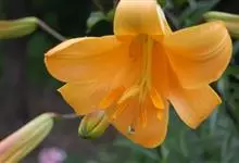 大苞萱草是阿福花科科,萱草属多年生草本植物,根状茎;根多少呈绳索状,叶片柔软,上部下弯。花萱与叶近等长,在顶生2-6朵花;苞片宽卵形,先端长渐尖至近尾状,花近簇生,花被金黄色或桔黄色;蒴果椭圆形,…全部>>