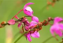 荷包牡丹 Fukuhara),是罂粟科荷包牡丹属的多年生草本植物,株高30-60厘米,具肉质根状茎;茎直立呈圆柱形;叶二回三出全裂,状似牡丹叶;总状花序顶生,基部为心形,花瓣紫红色至粉红色,稀白色,…全部>>