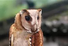 栗鸮:是鸟纲、草鸮科的猫头鹰。体长约29厘米,体重311-360克。是一种中等体型的红褐色鸮。其心形脸庞及时而竖起的“耳朵”与仓鸮甚似。上体红褐而具黑白点斑,下体皮黄偏粉具黑点,脸近粉色。虹膜深褐色,…全部>>