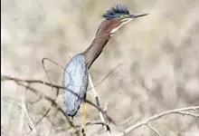 绿鹭:是鹳形目鹭科绿鹭属鸟类。体型小,头顶黑,枕冠亦黑色,上体蝉灰绿色,下体两侧银灰色;前额至后枕及冠羽墨绿色,眼后有一白斑,颊纹黑色;颚纹白色,后颈、颈侧和体侧烟灰色;背部披灰绿色矛状长羽,…全部>>