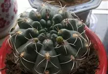 绯花玉 Speg.)是仙人掌科、裸萼球属多肉植物,植株呈扁球形,表皮墨绿色,刺针状,每个刺座有5枚灰色周刺,花生于球体顶端,夏季开花,花色有白、粉红、深红等。果实纺锤形,深灰绿色,种子黑色。…全部>>
