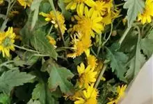 野菊花为菊科多年生草本植物,野菊花头状花序的外形与菊花相似,呈类球形,直径0.3~1cm,棕黄色。总苞由4~5层苞片组成。舌状花一轮,黄色,皱缩卷曲;管状花多数,深黄色。体轻。性苦、味辛,微寒。野生…全部>>