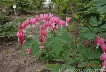 荷包牡丹 Fukuhara),是罂粟科荷包牡丹属的多年生草本植物,株高30-60厘米,具肉质根状茎;茎直立呈圆柱形;叶二回三出全裂,状似牡丹叶;总状花序顶生,基部为心形,花瓣紫红色至粉红色,稀白色,…全部>>