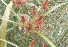 纸莎草是莎草科、莎草属的植物,具有粗壮的根状茎,高达2-3米,茎秆簇生,粗壮,直立,钝三棱形。叶退化呈鞘状,茎秆顶端着生总苞片,呈伞状簇生,总苞片叶状,披针形,顶生花序伞梗极多,细长下垂。瘦果灰褐色,…全部>>