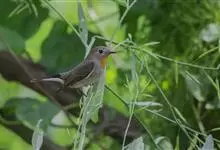 橙胸姬鹟:体长12-16厘米,是一种体型略小的林栖型鹟。尾黑而基部白,上体橄榄褐色,额具一白色横带,两端向上延伸至眼上形成眉斑。翼橄榄色,下体灰。成年雄鸟额上有狭窄白色并具小的深红色项纹,常不明显。…全部>>