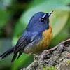 棕胸蓝姬鹟:属小型鸣禽,体长10-13厘米,体重6-10克,是一种体型很小的灰蓝及棕色鹟,雌雄羽色不同,雄鸟羽色艳丽,雌鸟羽色暗淡。雄鸟上体深蓝色,胸橙黄色,下腹灰白色。亚成鸟具褐色斑驳。…全部>>