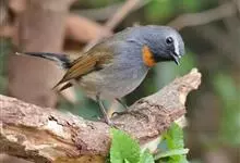 棕胸蓝姬鹟:属小型鸣禽,体长10-13厘米,体重6-10克,是一种体型很小的灰蓝及棕色鹟,雌雄羽色不同,雄鸟羽色艳丽,雌鸟羽色暗淡。雄鸟上体深蓝色,胸橙黄色,下腹灰白色。亚成鸟具褐色斑驳。…全部>>