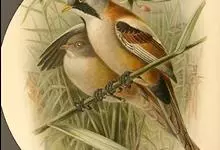 文须雀,别称髭雀、文须山雀,属雀形目、鹆鸟科、画眉亚科。眼先及髭纹黑色,头顶暗灰,后颈至覆尾羽深金黄色。小覆翼羽为灰色,中覆翼羽黑色,大覆翼羽外侧为棕褐色而内侧为黑色。尾呈棕色而中间的一对淡黄,…全部>>