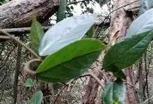 尾尖爬藤榕,攀援灌木,小枝具稀疏柔毛。叶厚纸质,披针形或卵状披针形,干时常皱折,顶端具尾状渐尖,基部宽楔形,叶背网脉明显,蜂窝状。全部>>