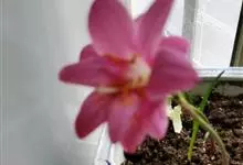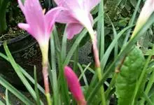 小韭兰学名韭菜莲又名风雨花、菖蒲莲、红玉帘和旱水仙,多年生草本,鳞茎卵球形,基生叶常数枚簇生,线形,扁平,花单生于花茎顶端,下有佛焰苞状总苞,花玫瑰红色或粉红色,蒴果近球形,种子黑色,花期夏秋。韭莲…全部>>