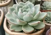 蓝石莲是景天科、拟石莲花属的多肉植物。茎部粗壮,成熟植株茎部木质化。叶片莲座型密集排列,株径不会很大,叶片相对较薄,常年绿色,表面布有白色粉末,中部凹陷,呈倒水滴状。叶尖较尖,叶缘光滑无褶皱,…全部>>