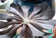 黑法师是景天科莲花掌属植物,自然界不存在分布。紫黑色的叶片呈莲座状层叠排列,给人以庄重神秘之感,观赏价值高。…全部>>