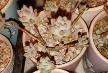 蓝石莲是景天科、拟石莲花属的多肉植物。茎部粗壮,成熟植株茎部木质化。叶片莲座型密集排列,株径不会很大,叶片相对较薄,常年绿色,表面布有白色粉末,中部凹陷,呈倒水滴状。叶尖较尖,叶缘光滑无褶皱,…全部>>