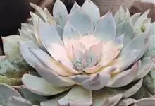 芙蓉雪莲是景天科拟石莲花属的植物。由于叶片表面覆盖着一层厚霜粉,通常呈现出白色;日照增多,温差增大后叶缘、叶尖会呈现出粉红色或橙红色。…全部>>